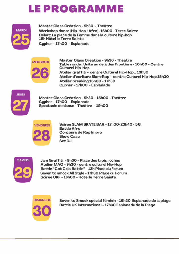 Le Programme: Cette année, le festival vous propose une série d'activités variées pour ravir tous les passionnés de la culture urbaine :