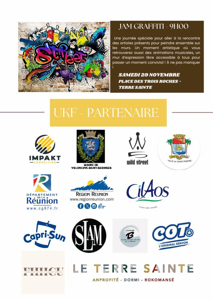 Organisé par la Fédération Hip-Hop et Culture Urbaine de la Réunion, célèbre toutes les facettes de la culture hip-hop, de la danse au rap, en passant par le graffiti, le DJing, les expositions, les conférences et les projections. Pour cette quatrième édition, nous aurons le plaisir d’accueillir des représentants de plusieurs pays, favorisant ainsi des échanges fructueux avec la jeunesse de l’île. nous pouvons d’or et déjà annoncer les pays suivants: Belgique, France, Île Rodrigue, Île Maurice, Madagascar, Bénin et Djibouti.